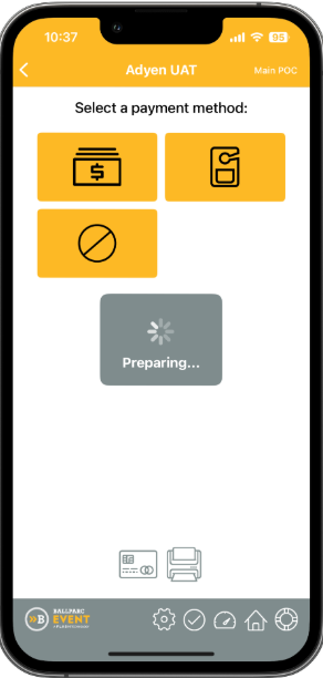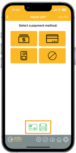 - Sign in to the Ballparc Event app and complete the setup until you reach the payment type selection screen.