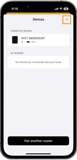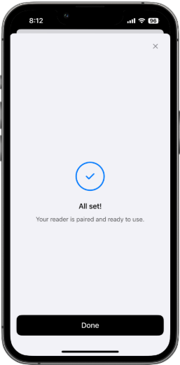- Once you see a message that your reader has been paired and is ready to use, tap the Done button.