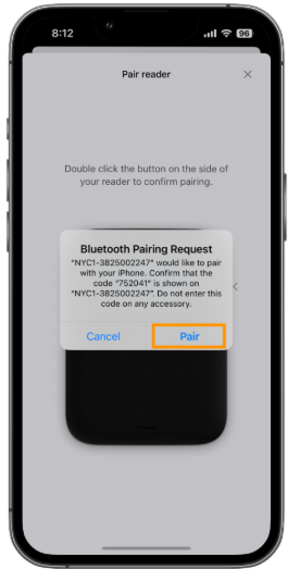 - Double-press the button on the side of the NYC1 reader to confirm the pairing request.