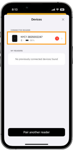 - Select Pair Reader on the Devices modal.