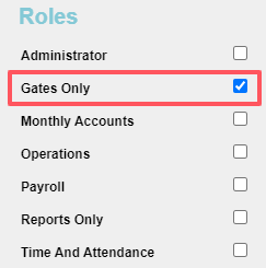 - Enabling the Gates Only flag restricts users to only the Vend Gate page. Other user roles should not be selected with the Gates Only role, this will override other access to all other Flash Admin portal tabs.