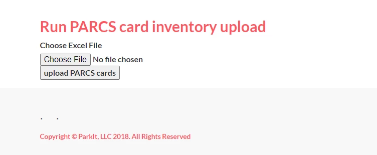 6- Go to onboarding.parkitmonthly.com/admin/admin.php and open one of the locations you are uploading to. Go to the Functions tab and scroll down to the “PARCS Card Inventory Upload”. Upload your excel and run the process. Flip back to the tab and make sure there are no errors. If there are errors none of the PARCS cards will have loaded. Correct errors and reattempt upload.