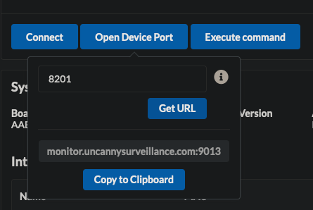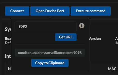 - Click on Open Device Port. Type 9090 for your port and click Get URL.