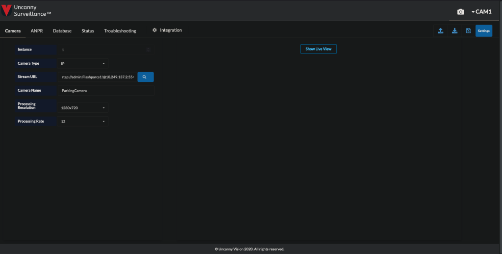 - Now click “Show Live View.” You should see frames from the camera feed.