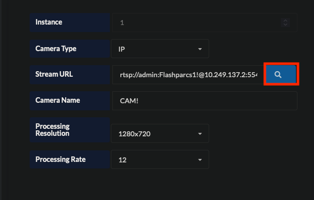 - Click on the blue search icon to see a list of available cameras on the subnet.