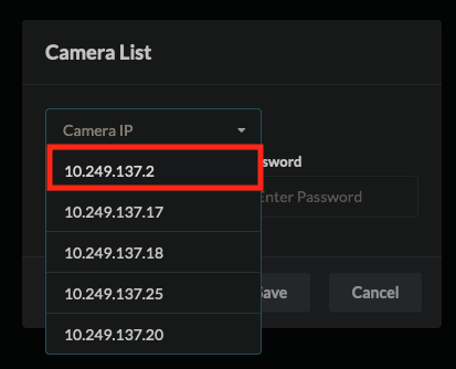 - Find the IP of the camera you would like to pair to the LPU.