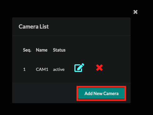 - If there will be more than one camera on this controller, click on the Add/Edit button in the top right corner and select Add New Camera.