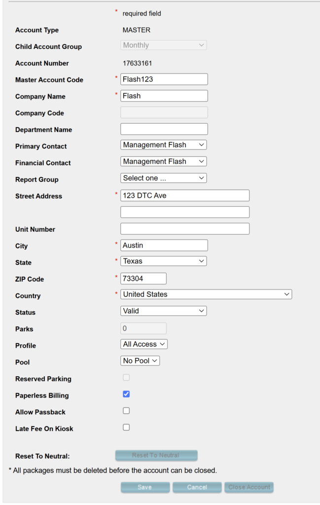 - Master Account Code: Enter a Master Account Code. (For instance FLASH123) The Master Account Code is the identifier you will use to put other accounts under this account’s umbrella.