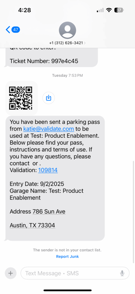 SMS Parking Pass Example #