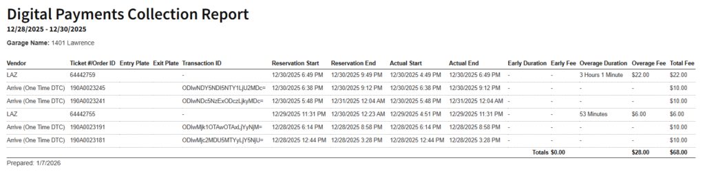 - Digital Payments Collection Report: Reconciliation of all penalty fees rebilled to 3rd party vendors