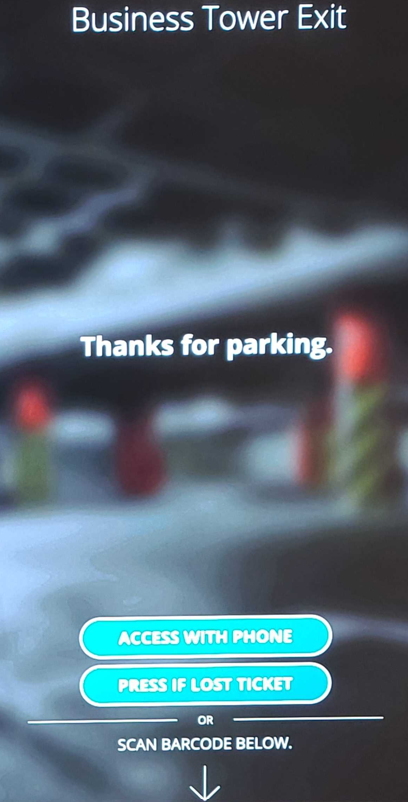 - Once payment is complete, the driver scans the paper ticket barcode or the digital barcode at the exit kiosk to exit the facility.