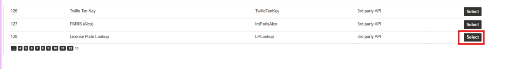 4. Select the garage from the list to add it under the License Plate Lookup API, then scroll back to the top and click the Close button.