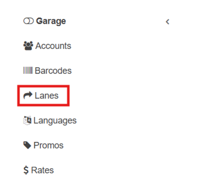 5. Select the Lanes tab from the Garage Settings menu > choose POF kiosk