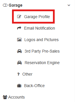 - From there, click the Garage dropdown on the left-hand side of the screen > Click Garage Profile.