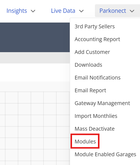 - Select the Parkonect tab > Modules option.