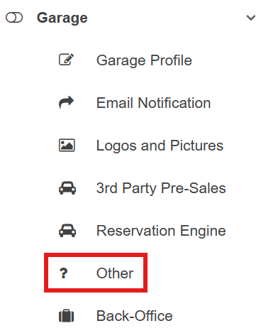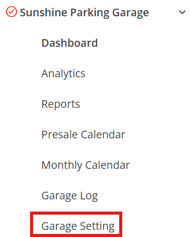 - Navigate to Garage Setting tab > Garage Settings section