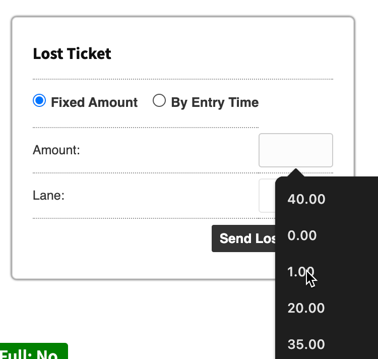 - Manual Rate Entry – An open field where the operator can enter a custom lost ticket amount before sending the rate to the lane.
