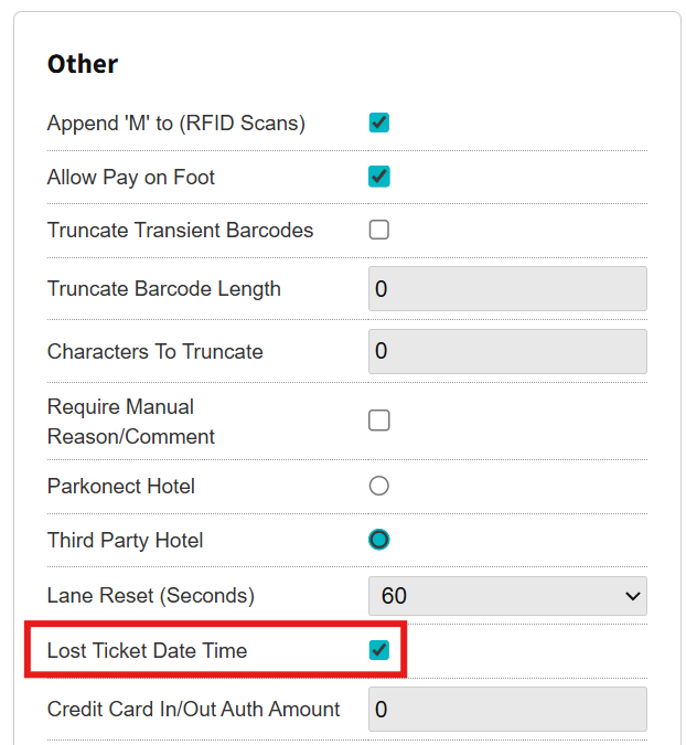 - Check the Lost Ticket Date Time flag
