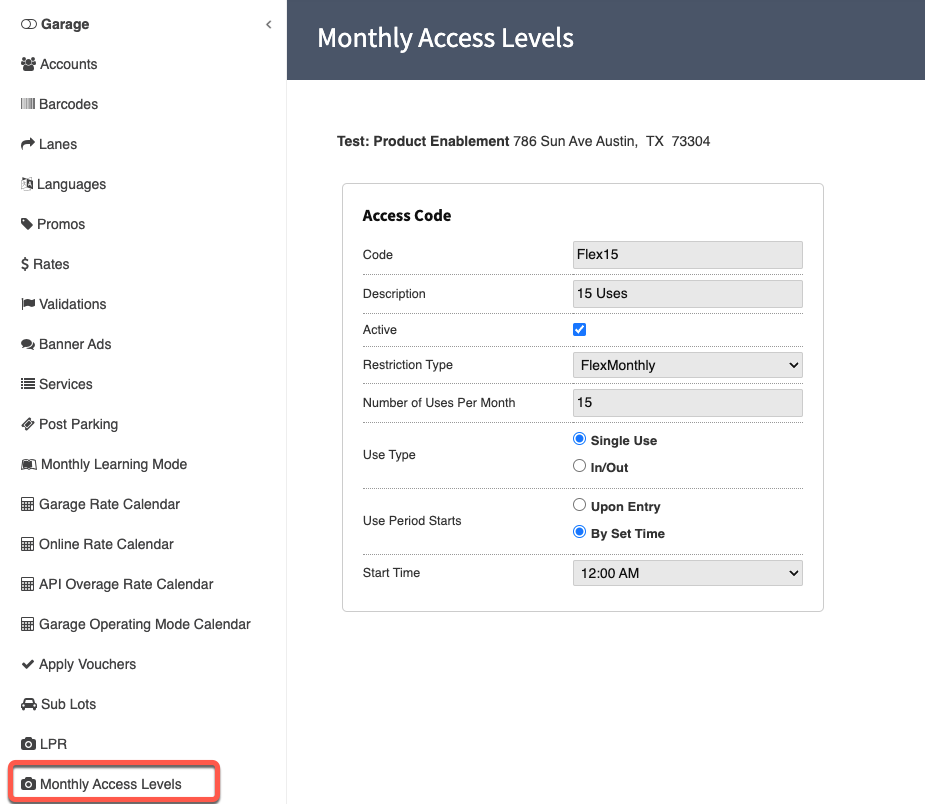 4. Assign the created Flex Monthly Access Level to the account (listed with internal code).
