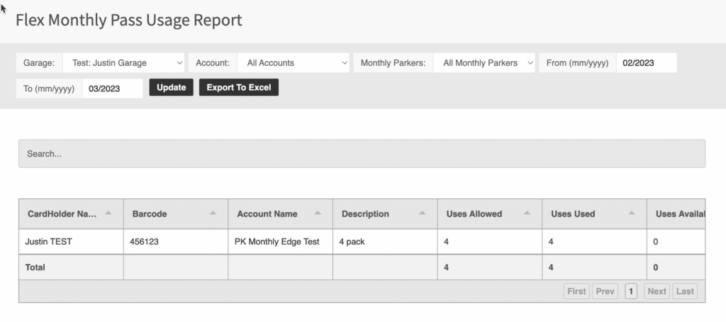 Access in Reports > Monthly Reporting > Flex Monthly Pass Usage