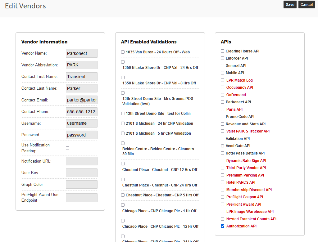 - To access this barcode for a Vendor Authentication Token, navigate to Parkonect → Vendors.