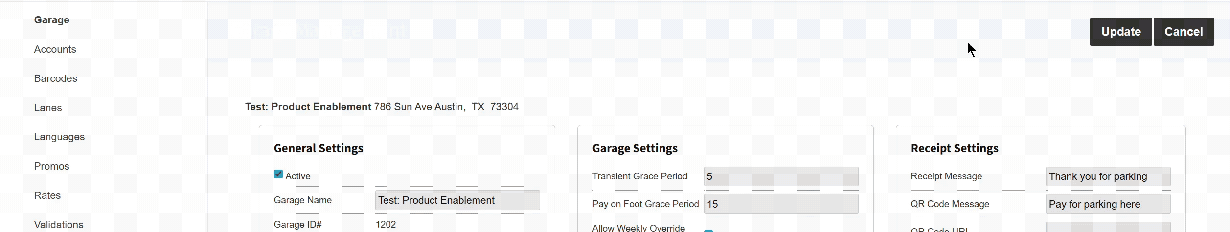 1. In the Parkonect Portal, select the garage and click the Garage Settings option.