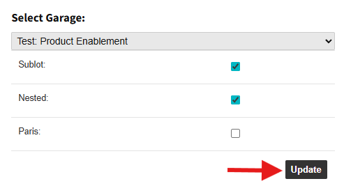 1. Click the Update button under the Garage selection section.