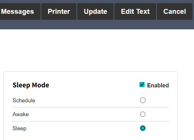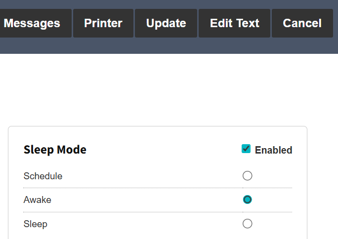 Selecting the Sleep option and clicking the Update button will instantly place the kiosk as inactive, the kiosk will only be able to go back to operation by repeating the instructions shown above with the Awake option.