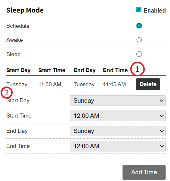 Selecting this option allows for the creation of a custom schedule that includes start day and time, and end day and time, by which the kiosk will automatically go to the inactive status and “wake up” following the selected days and times. Note that multiple schedules can be created to accommodate any need.