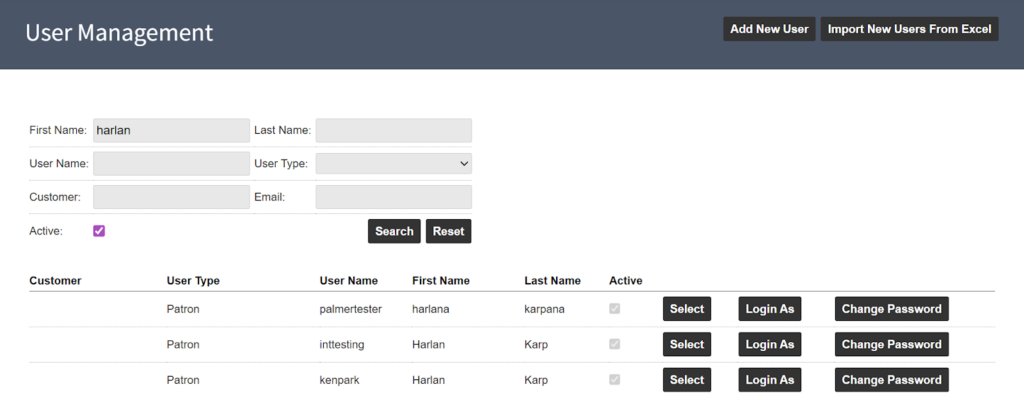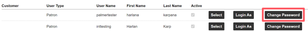 Super Admins can update a user’s password by selecting Change Password next to the user’s name.