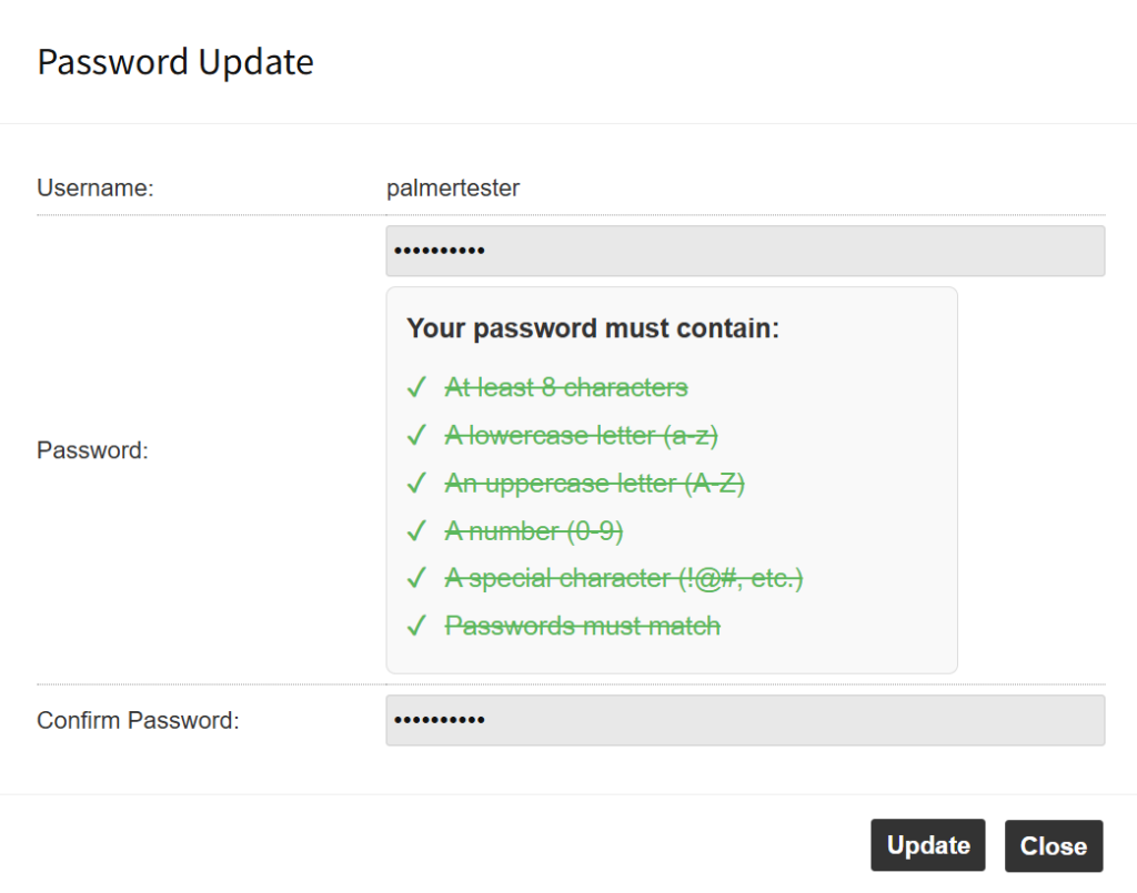 Click Update. The user will receive an email notification confirming the password change.